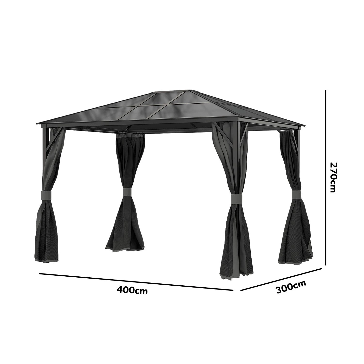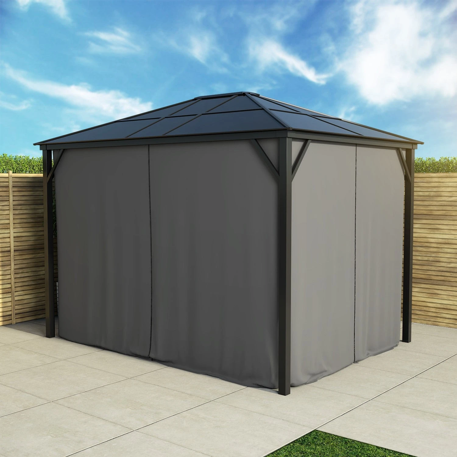 - Sturdy gazebo with roof and curtains