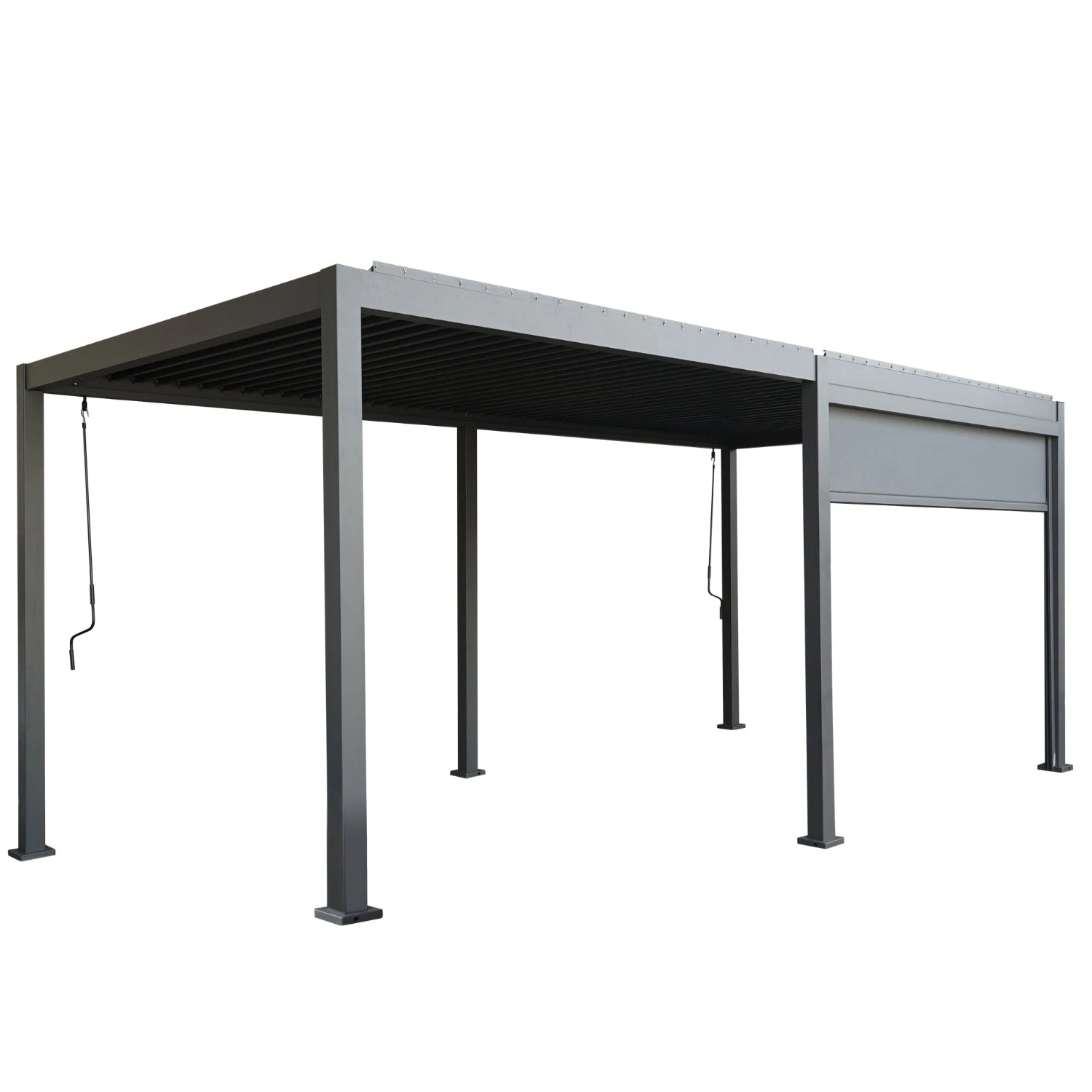 - Louvred roof can be adjusted to follow the sun’s rays or shelter from rain showers